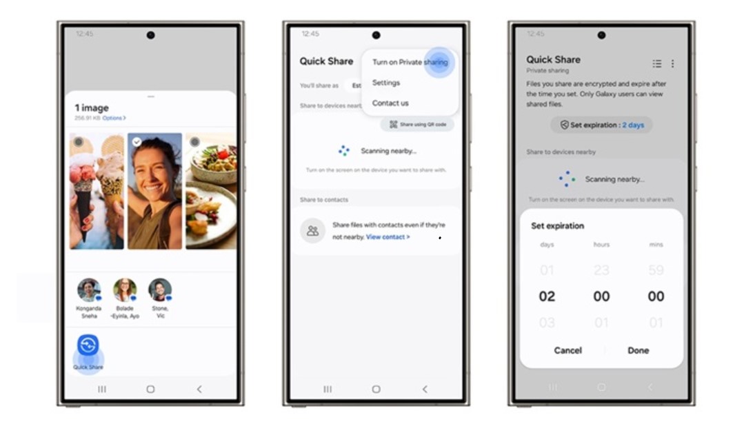 Samsung Galaxy has a built-in solution to this problem: Quick Share’s Private Sharing, a privacy-preserving file-sharing function that lets them share their data with peace of mind.