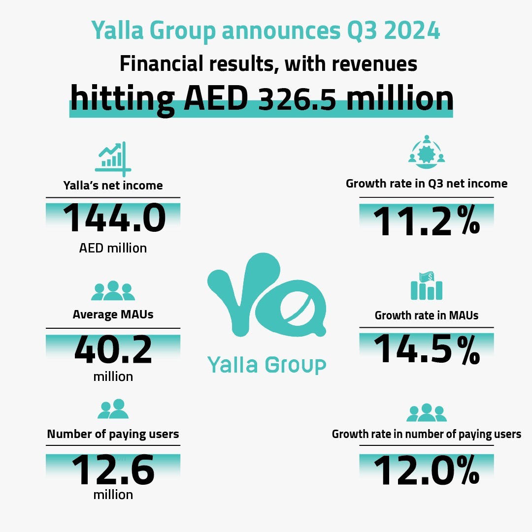 This brings Yalla’s total revenue in the first nine months of 2024 to AED 913.8 million (USD 248.8 million), up by 4.6% compared to AED 873.9 million (USD 237.9 million) during the same period in 2023.